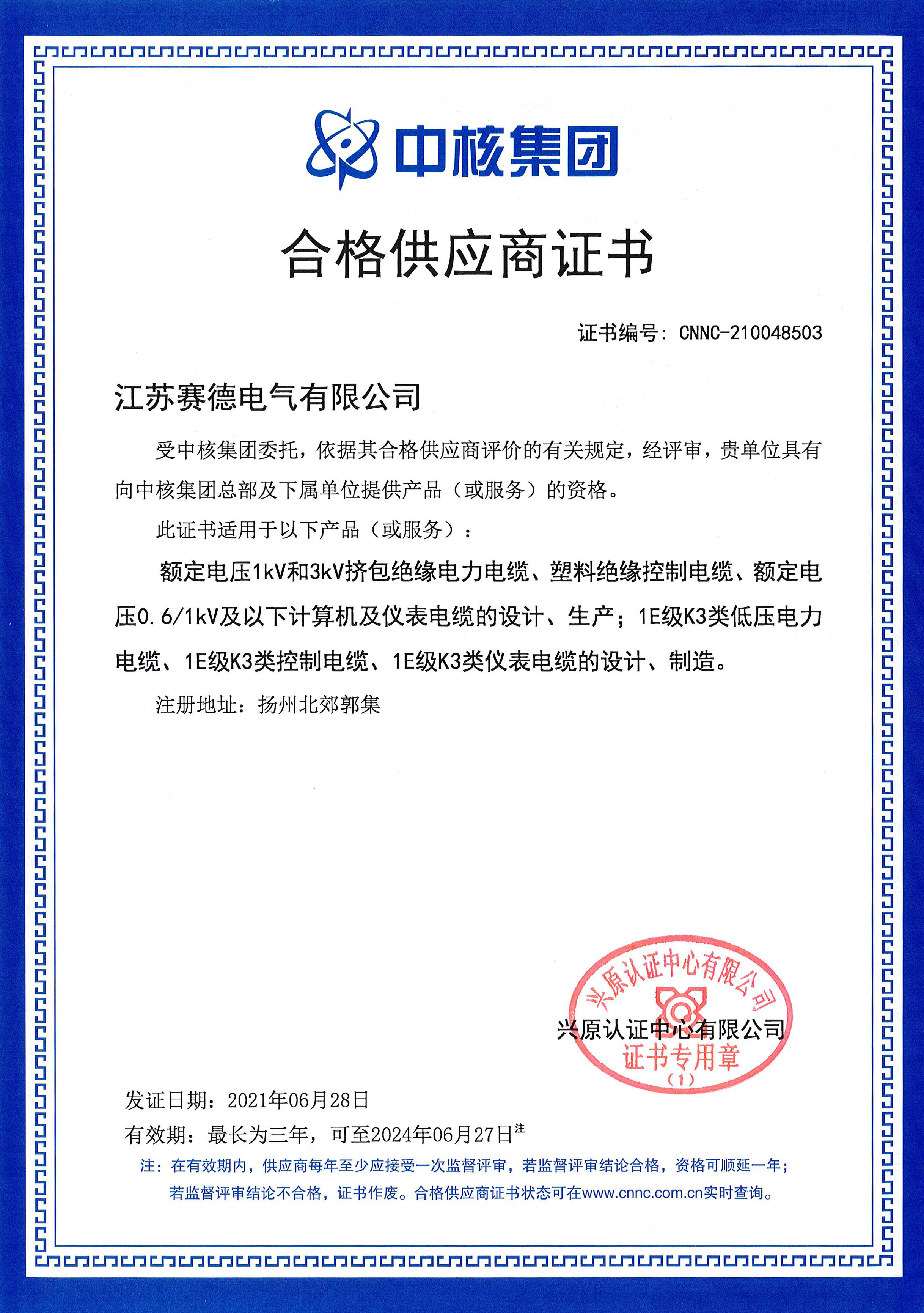 | 28 | 中国核建合格供方资格证书 |