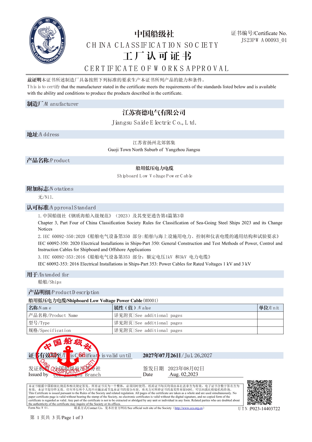 | 23 | 采用国际标准产品标志证书 |