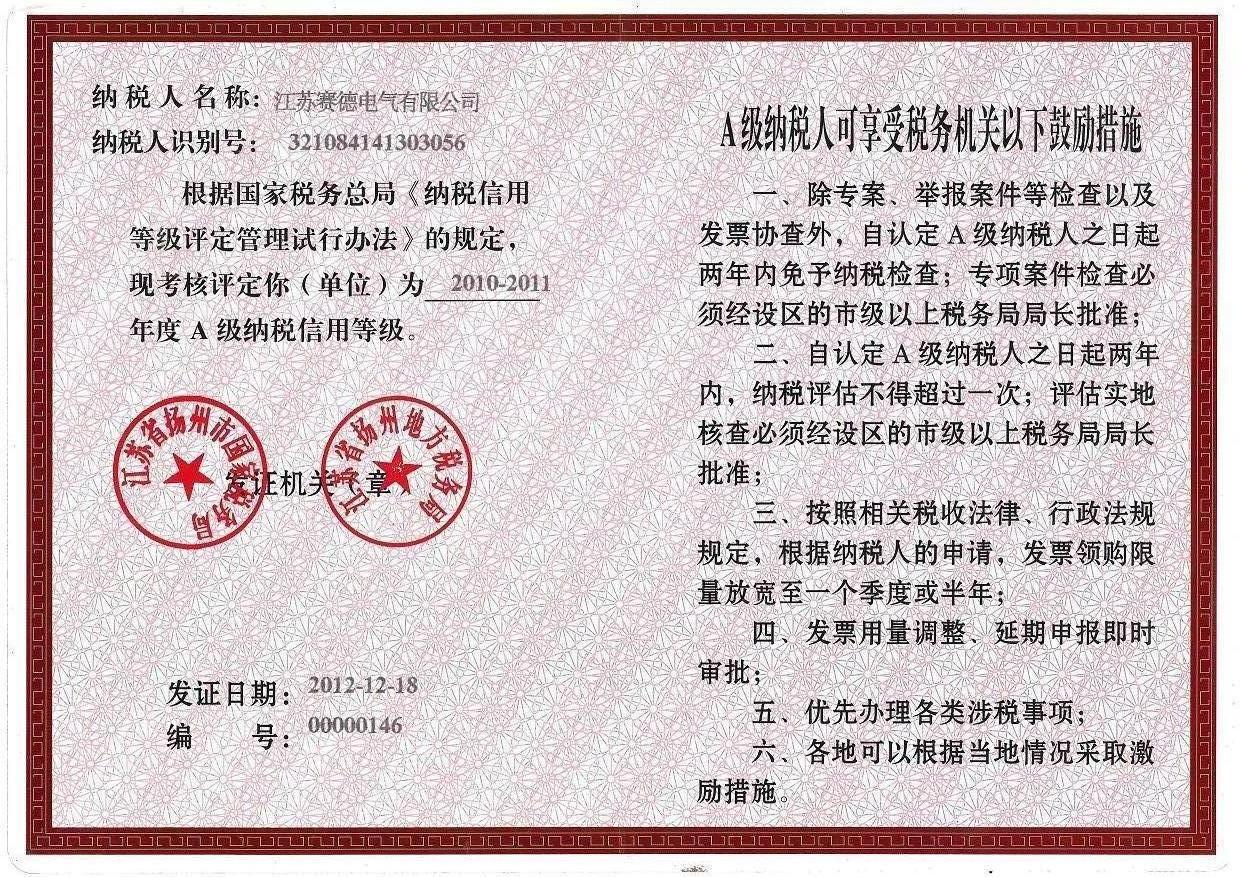 | 18 | A级纳税信用等级证书 |